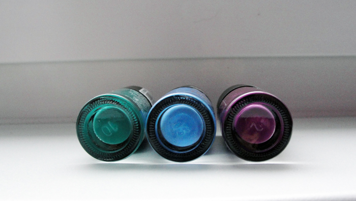 W moje łapki dzięki dobroci Hatsu trafiły 3 sztuki w kolorze niebieskim (nr 27 Shanghai), fioletowym (nr 4 New York) i zielony (nr 24 Stockholm, czego nie jest to zwykła zieleń)