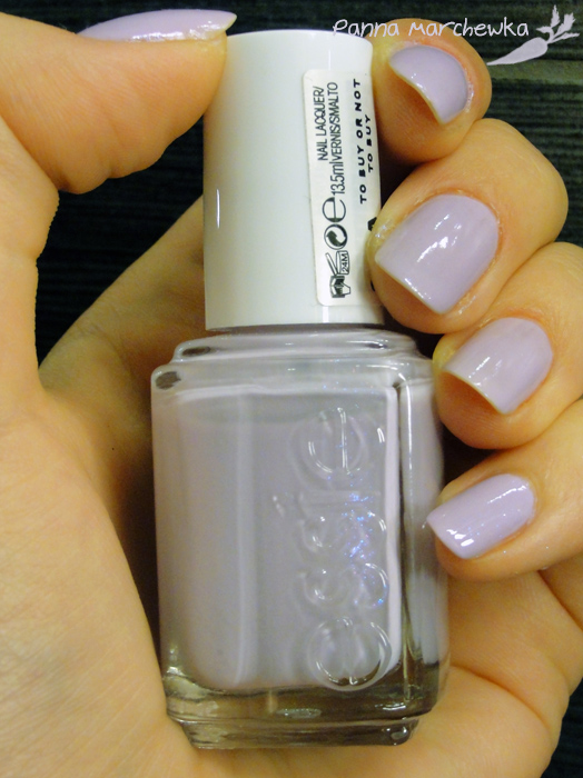 Jest to delikatny, lawendowy odcień fioletu z różowymi tonami. Kryje moim zdaniem słabo w porównaniu do kolegi z limitki- na paznokciach mam dwie warstwy ale myślę że i trzecia by się przydała- mi już się nie chciało jej kłaść.