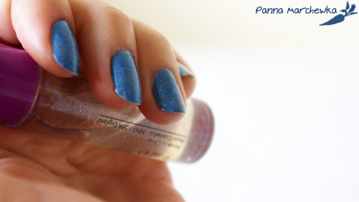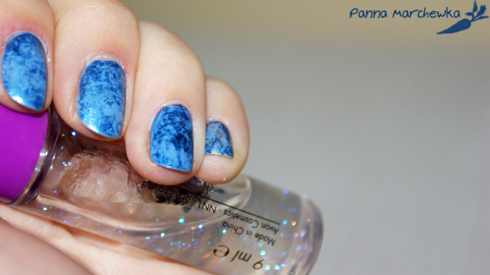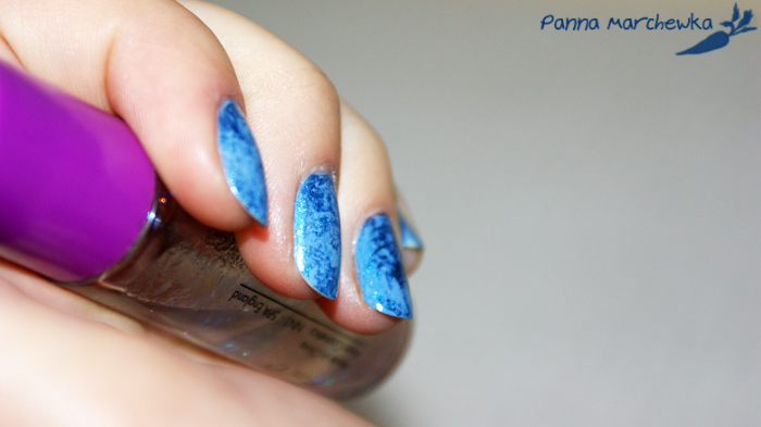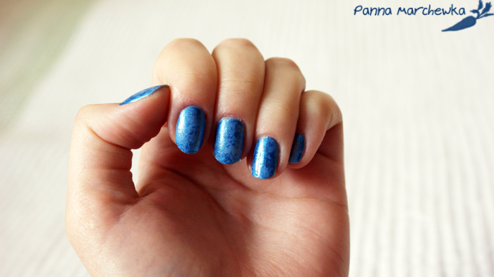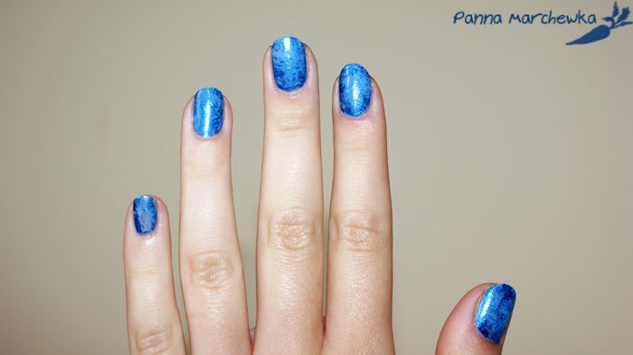 Efekt jest fajny, chociaż chyba mogłam jako bazę położyć biały kolor a nie niebieski, który mało kontrastuje z iskrzącym granatem.