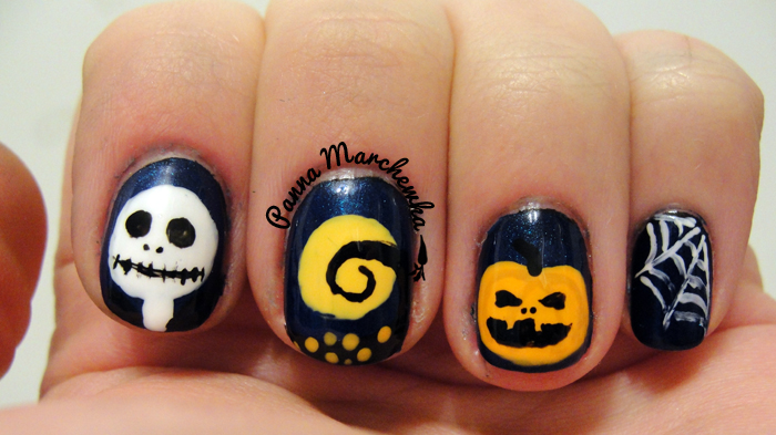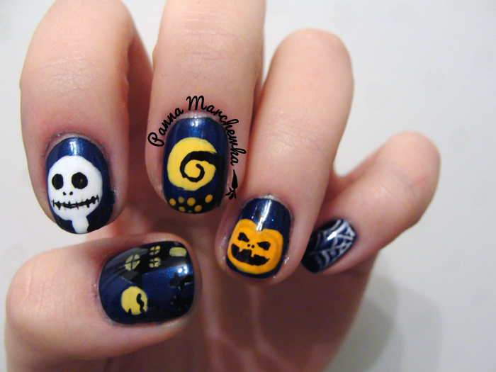 Jako że jestem wierną fanką filmów Tima Burtona, a Miasteczko Halloween to moja ulubiona animacja postanowiłam się nią zainspirować i zmalować coś w tym klimacie na moich jakże krótkich paznokciach, które nie dawały mi zbyt dużego pola do popisu.