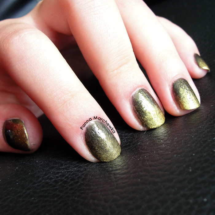 Mój gradient nie jest tak zjawiskowe jak te z połączenia typowo letnich kolorów (chyba najfajniej wygląda żółto czerwone ombre)- jest bardziej stonowane i powstało z połączenia tylko dwóch lakierów, ale jak dla mnie wygląda świetnie- i przepięknie mieni się w słońcu 🙂
