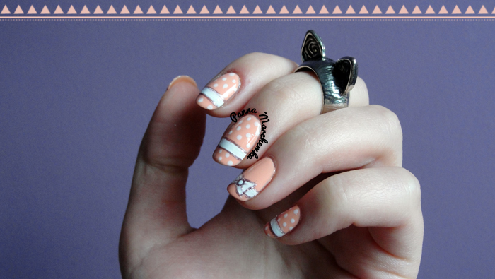 Dzisiaj dopisało mi słońce, bez którego ostatnio nie mogę zrobić dobrego zdjęcia więc uraczę was jeszcze jednym wpisem z moimi pazurkami pomalowanymi brzoskwinką z ostatniego wpisu. “Podrasowałam” je troszeczkę co mi lekko niestety nie wyszło- zwłaszcza na prawej dłoni… wyszło zbyt słodko (ostatnio sporo u mnie słodkich zdobień) no ale trudno- będę musiała troszkę z tym mani pochodzić gdyż… jutro idę do nowej pracy! Tak, tak, po miesięcznej labie znowu idę do pracy- tym razem zaczynam harówkę w księgarni co mnie bardzo cieszy. Po kinie księgarnia była drugim miejscem gdzie chciałam pracować- w kinie swoje 2 lata odbębniłam teraz pora na księgarnię. Nie jest to w prawdzie empik, ale mała sieć księgarni Matras.