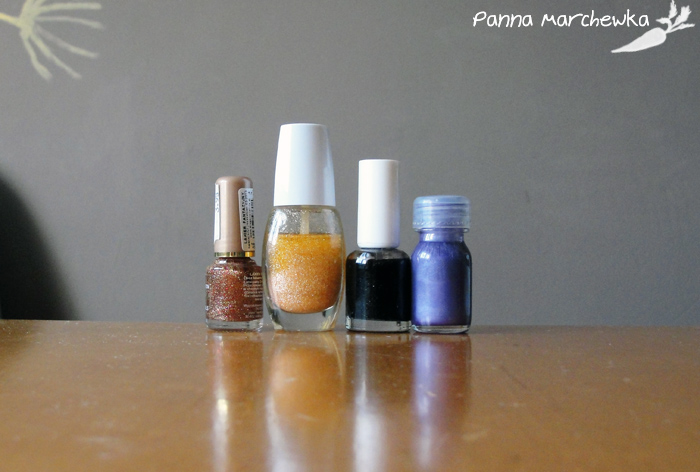 A na koniec 3 lakiery, które sama wykonałam i jeden gitter, który się gdzieś zawieruszył 🙂