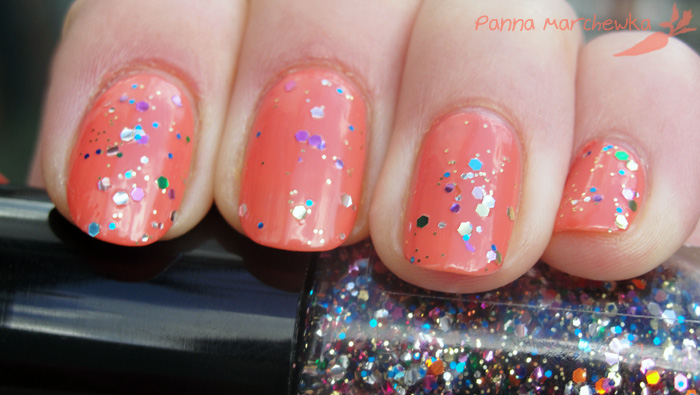Jest to mieszanka różnych brokatów- dużych sześcianów i małych kwadracików. Mi się akurat najbardziej podoba wersja minimalistyczna jak na środkowym palcu- jakoś to do mnie najbardziej przemawia.