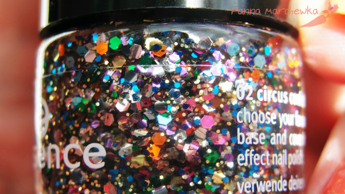 Jeden to lakier bazowy z limitki, który według producenta ma nam zastąpić zmywacz na wakacjach- lakier mamy ściągać jednym ruchem z płytki, a drugi to kolorowy gitter nr 2 o nazwie circus confetti.