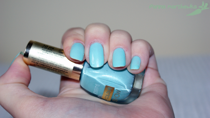 Wybrałam kolor błękitny o nr 625 – wpadający w zieleń z shimmeem, który pięknie mieni się w słońcu.