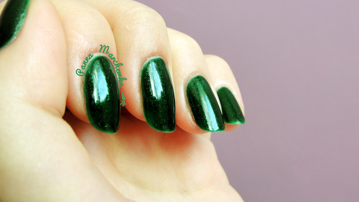 Dzisiaj przybliżę wam lakier, który z tych zdobyczy zachwycił mnie najbardziej czyli Eveline nr 669 o kolorze zielono-szmaragdowym. W buteleczce zachwyca swą głębią i delikatnym blaskiem. Niestety jak to z lakierami Eveline bywa krycie słabe… 3 warstwy to minimum a i tak widać prześwity. Co dziwniejsze końcówki paznokci, chociaż nie są starte są wyraźnie jaśniejsze- jak dla mnie dodaje to uroku pazurkom, ale nie każdemu by taki efekt pasował.