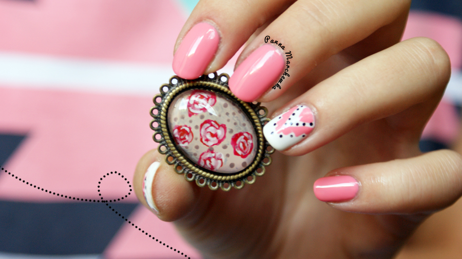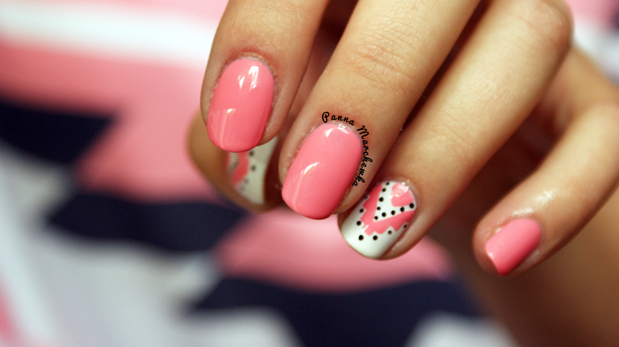 Mimo wszystko to on pierwszy z całej czwórki wylądował na moich paznokciach praktycznie solo. Dla przełamania tego prosiaczka postanowiłam dołożyć odrobinę bieli z etnicznym akcentem.