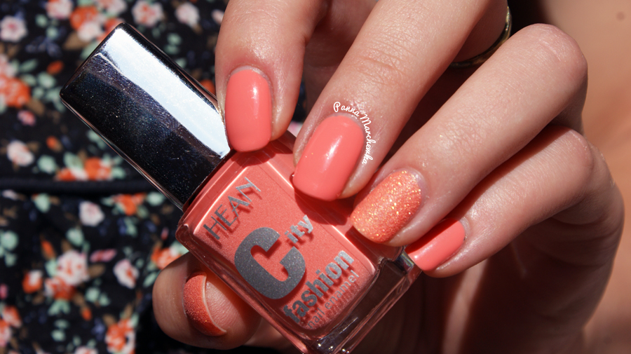 Ostatnio mam coraz mniej czasu na jakieś wymyślne zdobienia paznokci więc stawiam na prostotę- jeden kolor bazowy + jakiś ciekawy akcent na serdecznym i kciuku. Taki myk zastosowałam i przy Hean by nie było zbyt nudno. Tu dodałam piasek, który idealnie zgrał się kolorem- piasek ten pochodzi od Kiko, ale nie o nim mam dzisiaj pisać. Dzisiaj główne skrzypce gra morelka.