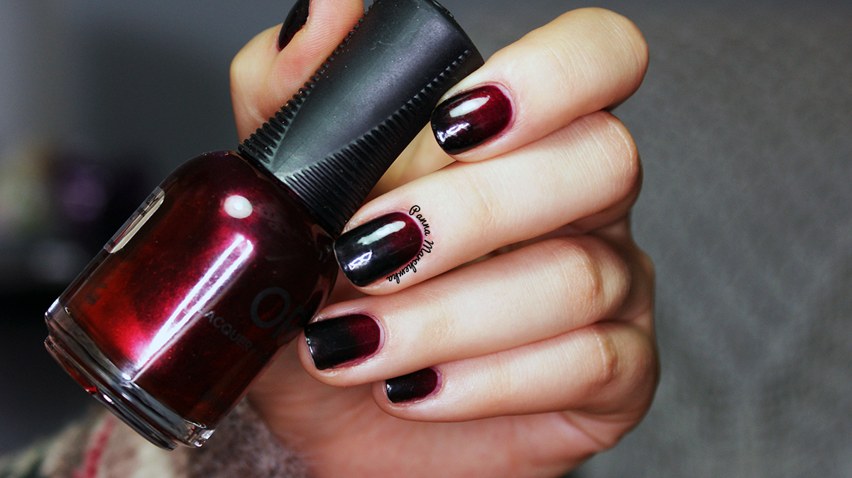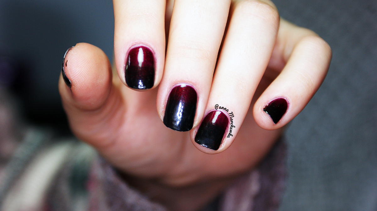 Z racji tego że chodzą za mną lekko wampirze, mroczne stylizacje postanowiłam wymieszać go z czernią i stworzyć gradient z użyciem gąbeczki do makijażu- Podoba się?