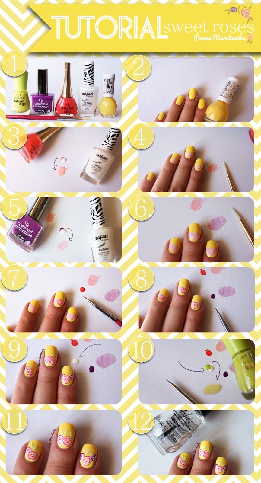 4. Na paznokciach tworzymy nieregularne play, które będą wstępną bazą pod róże- im mniej regularne tym róże wyjdą bardziej realistyczne.