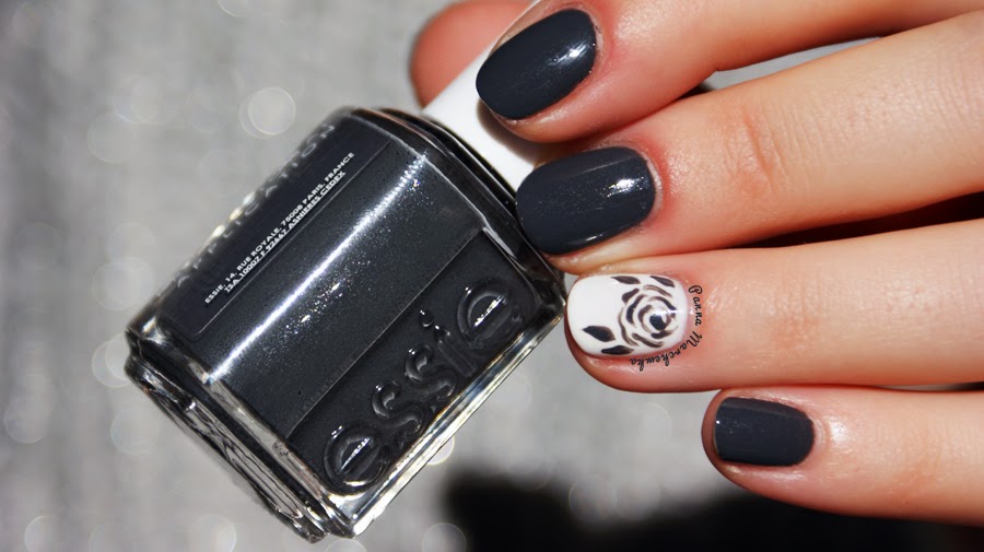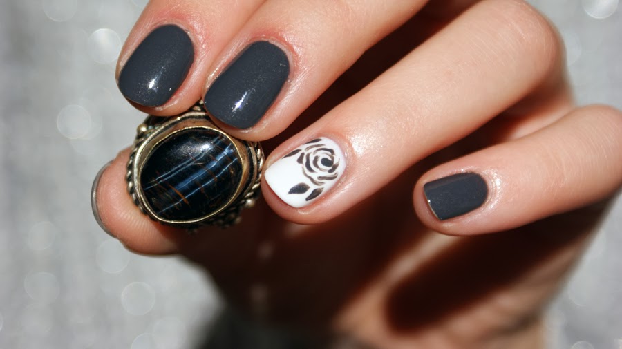 Czarna róża na białym tle ostatnio często się przewijała na blogach- postanowiłam więc i ja zainspirować się tym trendem i zmalowałam różę w stalowym odcieniu. Całość wyszła całkiem fajnie.