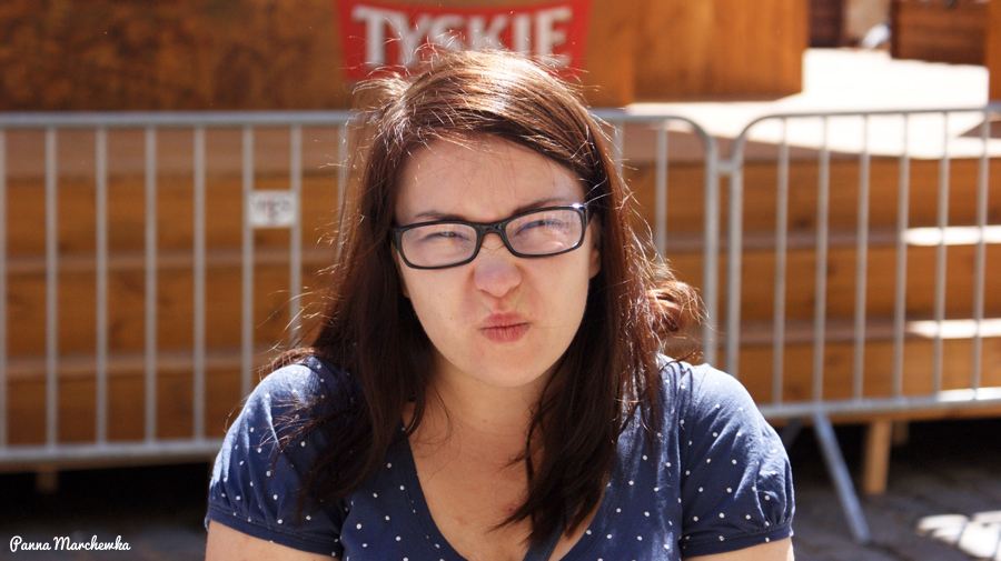 Dojechałam- wysiadłam pociągu no i zonk… nigdy nie byłam w Poznaniu na dworcu- nie wiem gdzie iść, co robić- nagle telefon- patrzę- mój organizator Maciek- uff nie zapomniał o mnie. Ok, podaje mi szczegóły- stoi pod wielkim bilbordem z reklamą smerfów przed dworcem. Spoko- idę do wyjścia… ale tam nigdzie nie widzę Smerfów! Panika- wracam… Pewnie pomyliłam wyjścia- znowu telefon. Nie, nie pomyliłam… Ok… chyba jestem ślepa. Nagle patrzę- jakiś miły pan w okularach na mnie patrzy- trzyma telefon (akurat z nim rozmawiałam)- to pewnie on. Nie pomyliłam się. Na szczęście. Chwilę poczekaliśmy- dotarły do nas pozostałe dziewczyny- Agatę, Magdę i Asię. No i ruszyliśmy w drogę do centrum gdzie znajdował się nasz hostel i gdzie czekały na nas już dwie dziewczyny Beata i Monika.