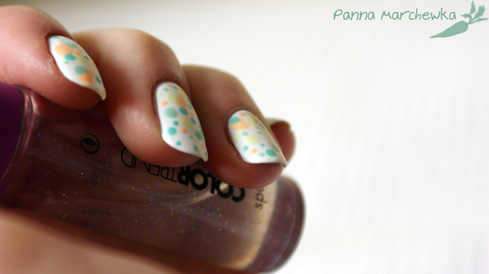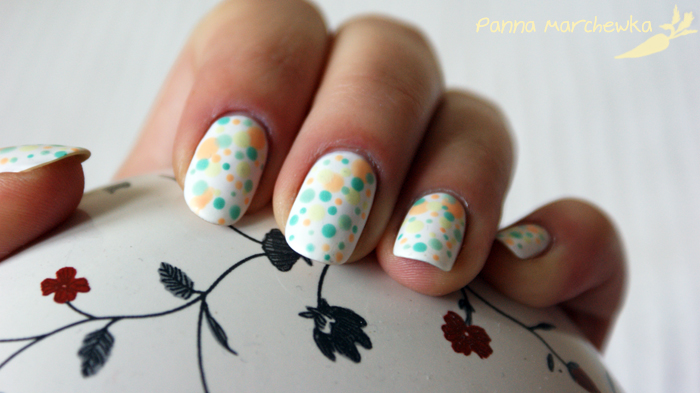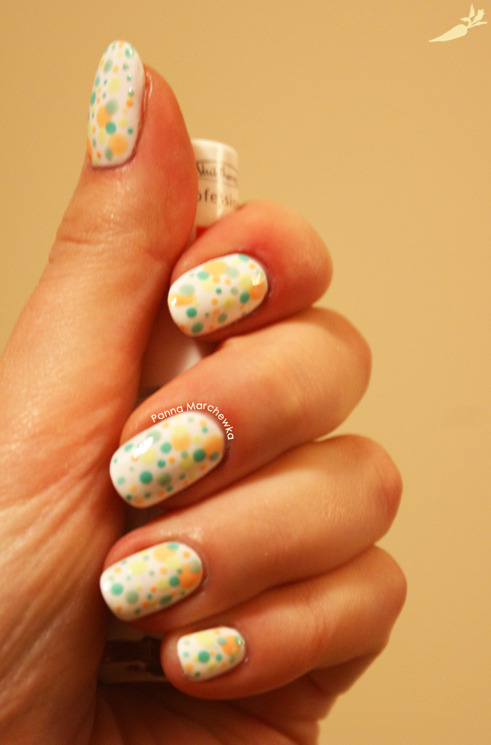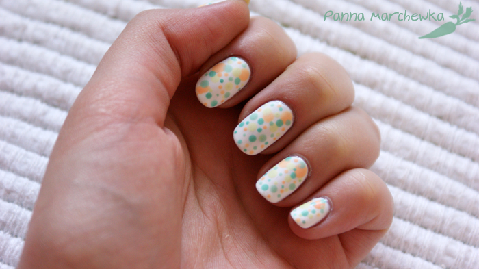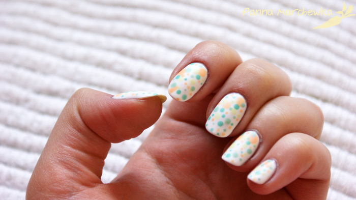 A tymczasem pokazuję wam moje nowe dzieło- Białe pazurki w pastelowe kropki..
