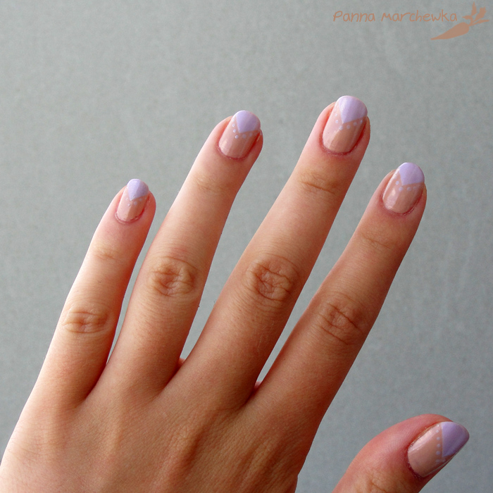Na zdjęciach kolor niestety uciekł… w rzeczywistości było ładniej… delikatniej. Beż z delikatnym fioletem bardzo fajnie się komponuje, chociaż nie było to tak widoczne na pierwszy rzut oka. Kolejne maniz wykorzystaniem tych kolorów to będzie gradient 🙂