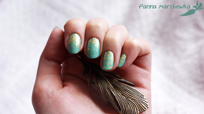 A na deser moje pazurki. Dzisiaj złoty z turkusem.
