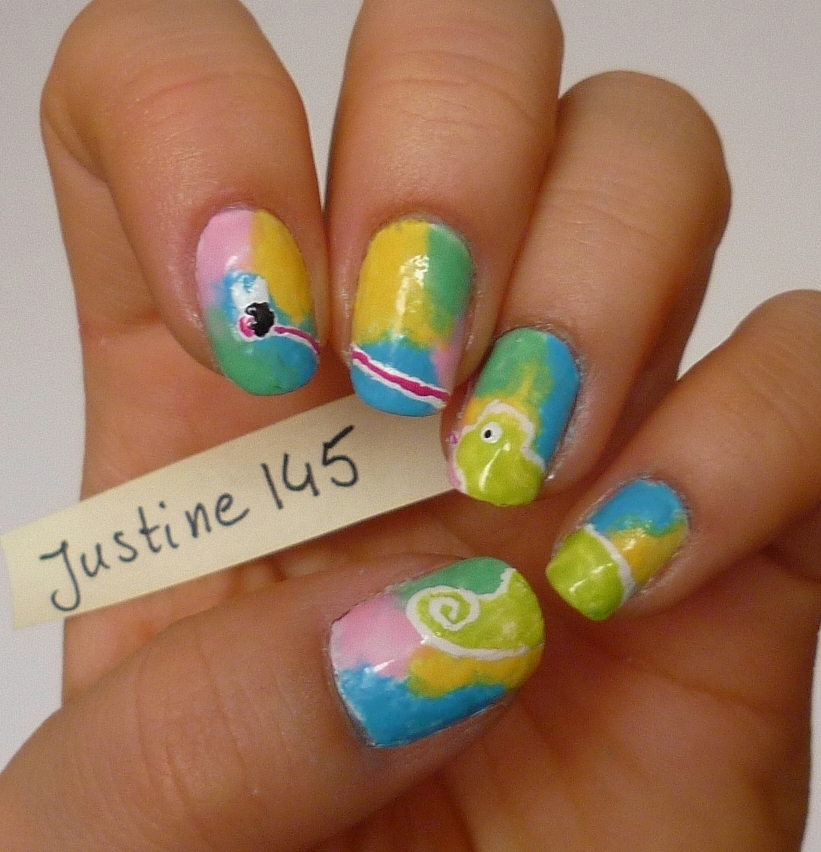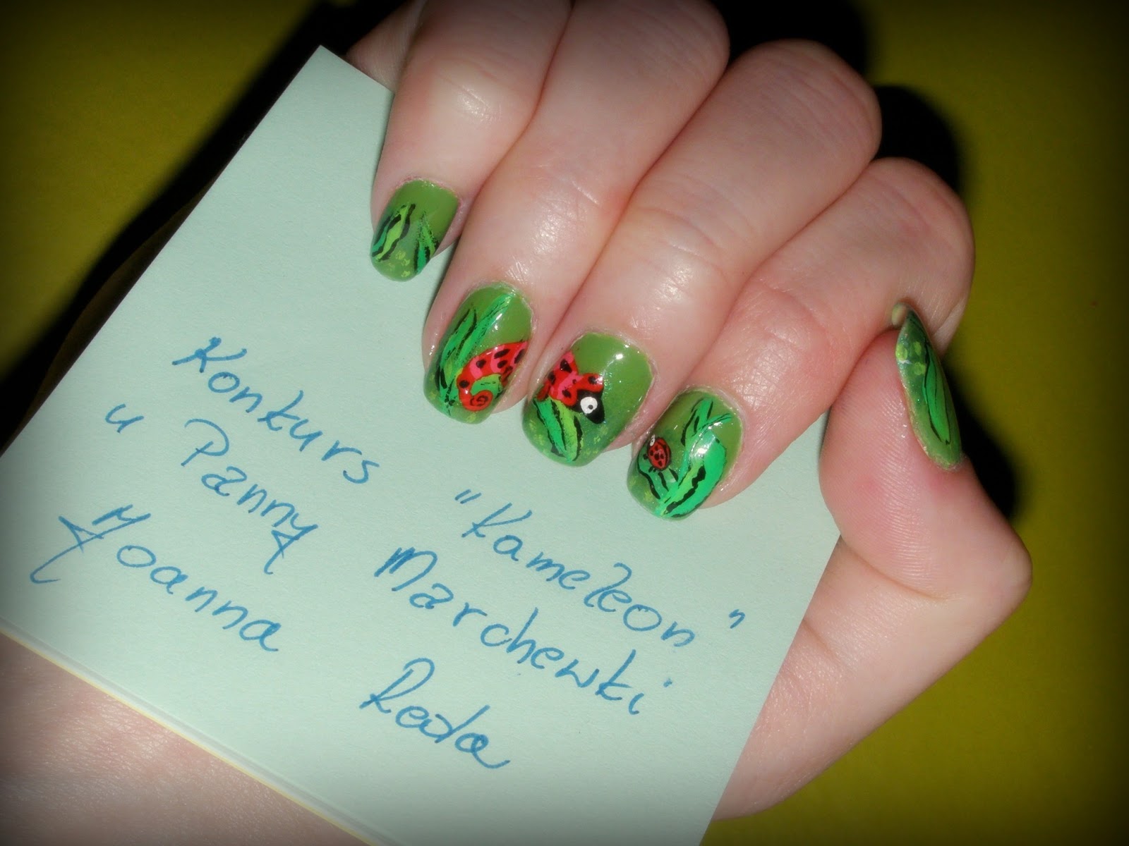 Ja i T wybraliśmy to mani jednogłośnie- za perfekcyjnie wykonanie, niebanalne tło i świetnie namalowane kameleony.