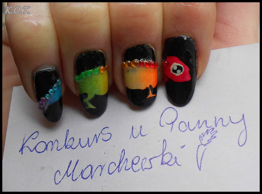T stwierdził że osoba, która wykonała to zdobienie musiała się nieźle natrudzić by coś takiego wyczarować, a ja się z nim zgodziłam, świetny gradient oddaje naturę kameleona- a brylanciki fajnie to podkreślają.